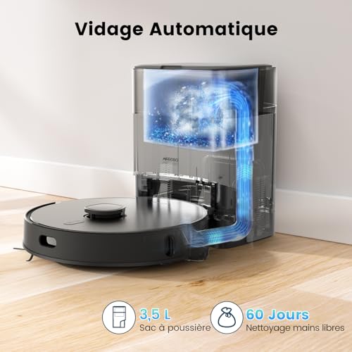 - 【60 Jours de Nettoyage à Mains Libres】Le bac à poussière de grande capacité (3,5 litres) sert de station d’accueil pour aspirateur robot et permet également de collecter et de stocker automatiquement les déchets collectés par robot aspirateur laveur. Un sac à poussière peut stocker jusqu’à 60 jours de déchets, ce qui signifie que vous pouvez profiter d’un mois de nettoyage mains libres.