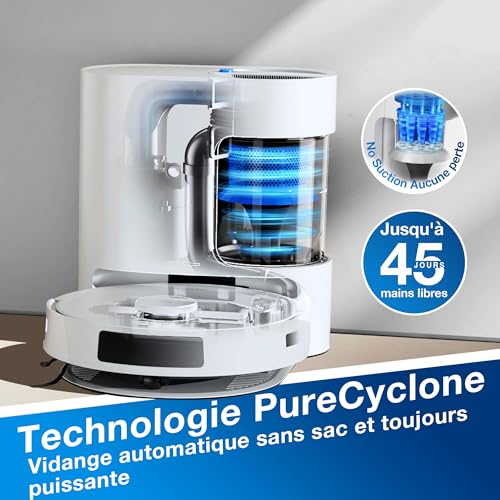 - 【Le conteneur à poussière sans consommables】La conception du conteneur à poussière sans consommables de la famille DEEBOT N20 favorise une utilisation durable, permettant d’économiser des coûts et de réduire l’impact environnemental en éliminant le besoin de remplacer les sacs à poussière, tandis que sa fonction de vidage facile et son conteneur visualisé facilitent l’entretien sans tracas et l’élimination en temps opportun des débris. Vidange Automatique poussière, nettoyage autonome de 45 jours.