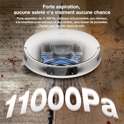 - 【Puissance d’aspiration imbattable de 11 000 Pa】Découvrez un nouveau niveau de nettoyage avec le DEEBOT T30S. Il dispose d’une soufflerie et d’une puissance d’aspiration jusqu’à 11 000 Pa, entraînée par une technologie avancée de moteur et de flux d’air, rend le nettoyage des tapis sans effort. Profitez de sols impeccables dans toute votre maison, sans tracas.