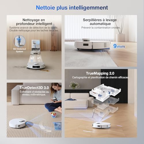 - 【Navigation avancée et évitement d’obstacles】Faites l’expérience d’un nettoyage approfondi et ininterrompu avec le DEEBOT T30S. TrueDetect 3D 3.0 évite les obstacles avec précision, tandis que TrueMapping 2.0 cartographie rapidement votre maison. Cette combinaison intelligente garantit un nettoyage efficace avec un risque minimal de coincer ou d’endommager les meubles.
