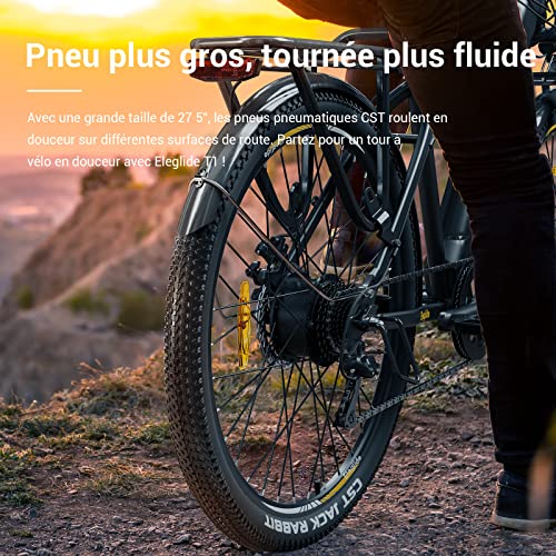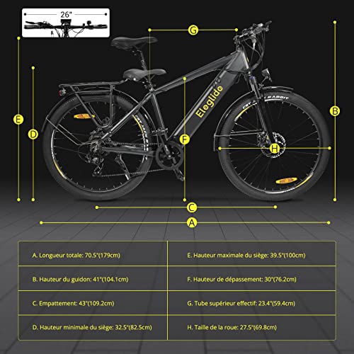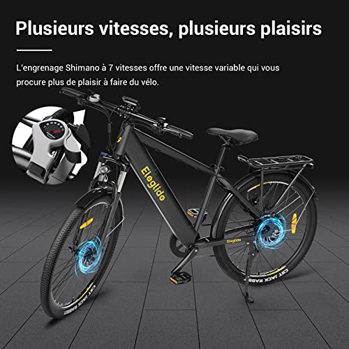 - 【Accessoires de qualité】Le vélo de montagne électrique Eleglide est équipé de composants de haute qualité; pneus pneumatiques CST de 27,5 pouces, qui peuvent s’adapter à toutes sortes de surfaces routières. Dérailleur Shimano à 7 vitesses à l’arrière. Écran LCD intelligent affichant diverses informations. Rendez votre trajet plus intelligent et plus facile.