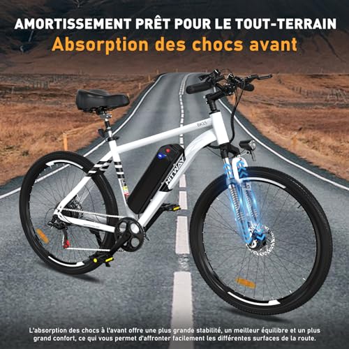 HITWAY Vélo Électrique, VTT Électrique avec Batterie au Lithium Amovible 36V12Ah, Ville E-Bike avec 7 Vitesses, Moteur 250W, Autonomie 35-90km pour Adulte