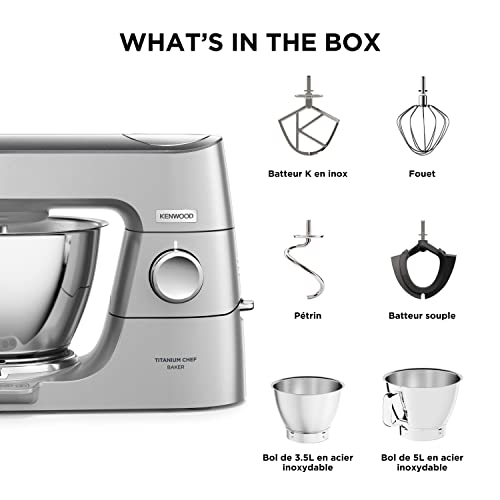 Kenwood Titanium Chef Baker KVC85.004SI Robot Patissier avec Balance Intégrée, Inclus Ensemble Pâtisserie 3 Pièces, Bol de Mélange de 5L et 3.5L, Régulateur de Vitesse…