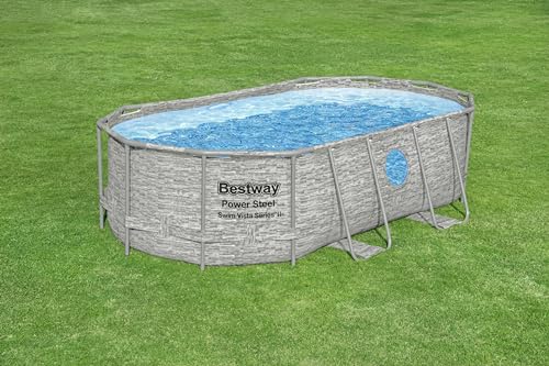 Piscine BESTWAY hors sol Power Steel™ SwimVista ovale motif rotin avec hublots 427 x 250 x 100 cm