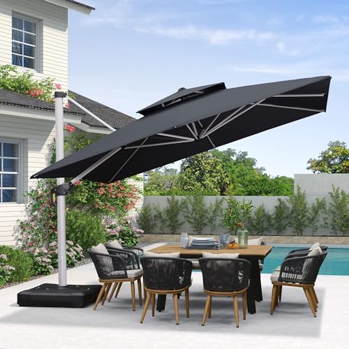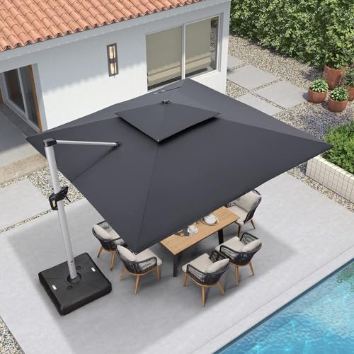 PURPLE LEAF Parasol Déporté 3.65 x 3.65 m Carré avec Pieds de Parasol, Luxueux Parasol De Jardin Extérieur Toit à Double avec Housse de Protection, Gris acier