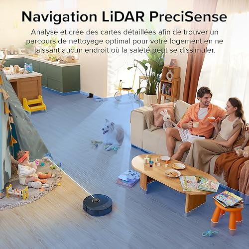 • 【Aspiration puissante de 5500 Pa】La puissance d’aspiration HyperForce a été améliorée à 5500 Pa, permettant au robot Q8 Max de ramasser facilement la saleté, les cheveux, la poussière et les poils d’animaux sur différents types de sols, vous laissant une maison impeccable.