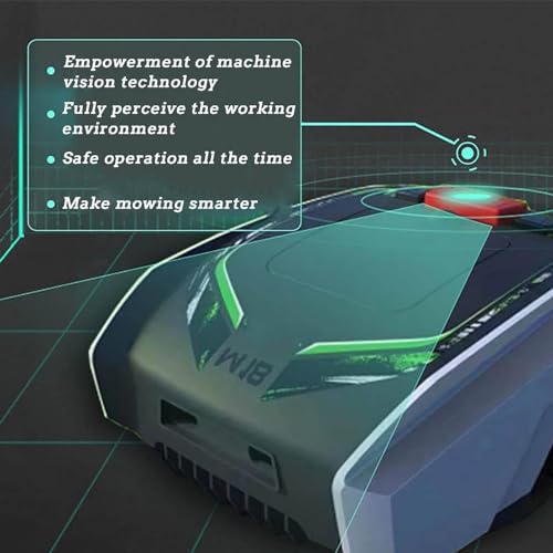 - 【CAPTEUR INTÉGRÉ】 Le capteur à ultrasons automatique intégré du robot tondeuse détecte les obstacles devant vous et évite automatiquement les collisions. Le capteur intégré peut détecter que si la machine ne touche pas le sol pendant plus de deux secondes, la lame cessera automatiquement de tourner.