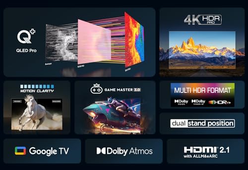 • Téléviseur TCL 4K QLED 55T7B avec Google TV et Game Master 3.0