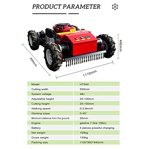 Tondeuse à Gazon Robot, 7,5/HP Puissance Robot Tondeuse Hybride Gaz-Électrique à Quatre Temps Grimpe jusqu’à 30° d’Inclinaison, avec Télécommande, Équipement d’entretien de…