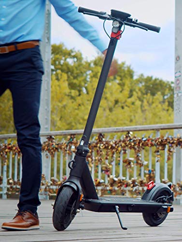 - Pneus solides : cette trottinette électrique a des roues de 10 pouces. Les pneus sont gonflables à l’avant comme à l’arrière. Les roues gonflables 10 » sont un vrai avantage pour appréhender votre environnement. Avec cette trottinette vous pouvez aller sur tous types de route.