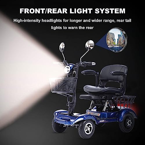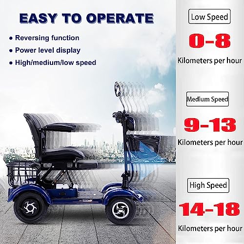 ZORZA 4 Roues Scooter Electrique Adulte, Pliage Vieil Homme Scooter Electrique Handicapé, Velo Electrique Homme avec La Lumière et Panier, Dresiennes Electrique Adultes,Bleu